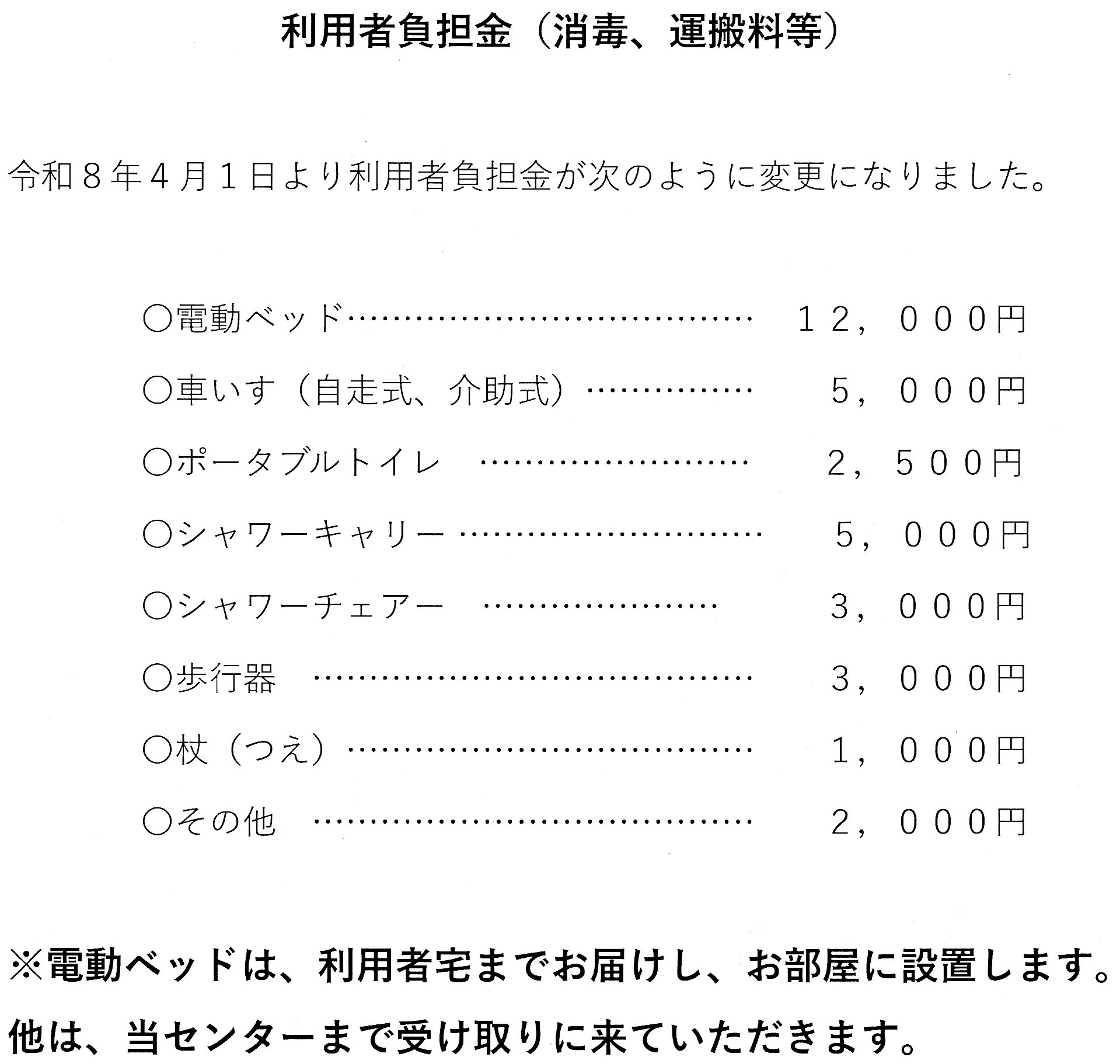 令和8年4月1日より利用料金が変わりました。取り急ぎお知らせいたします。